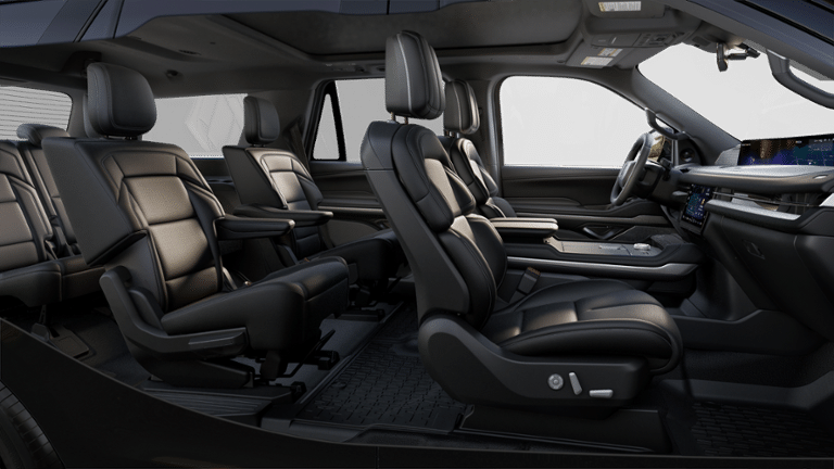 The opulent design inside our Reserve cabin elevates your driving. It features heated/ventilated leather front seats and second-row captain's chairs, a power-folding third row, a heated leather power steering wheel, tri-zone automatic climate control, power-adjustable pedals, and real-wood accents. Digital benefits include a 48-inch panoramic dashboard driver display with Pano Mode, connected navigation, voice control, Android Auto/Apple CarPlay, WiFi compatibility, Alexa Built-In compatibility, Bluetooth®, wireless charging, and Revel audio.