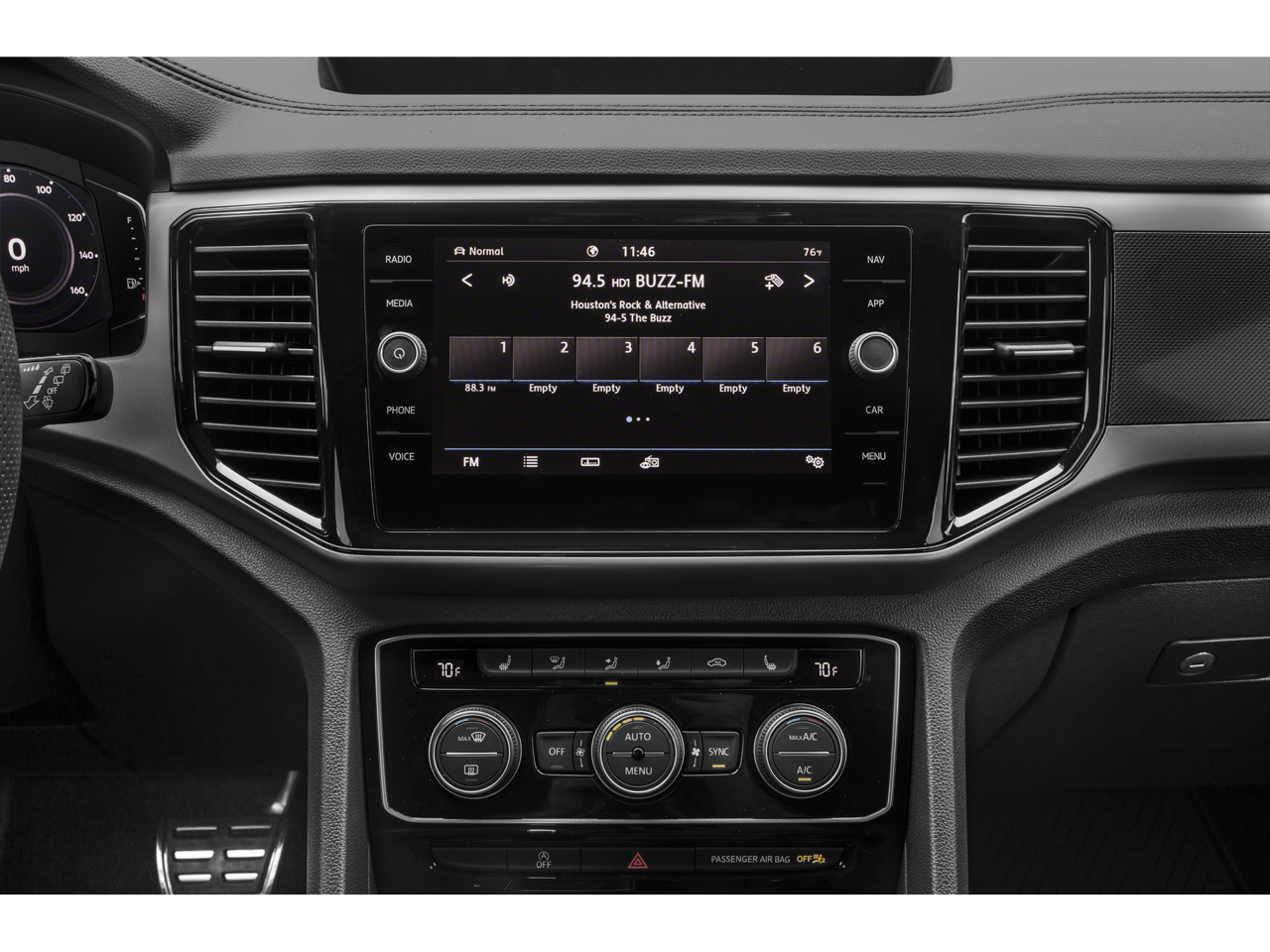 • Radio: Discover Media w/8.0" Touchscreen Nav -inc: AM/FM/HD Radio, WMA/MP3/FLAC/CD player w/USB input, voice control, capability for in-vehicle 4G LTE enabled Wi-Fi (cellular data plan required; includes limited trial), capability for VW Car-Net services (capabilities for certain services vary; requires enrollment or subscription), Fender premium audio system w/center speaker and subwoofer, Bluetooth® connectivity (for compatible devices), SiriusXM satellite radio (w/limited-time trial subscription) and VW App-Connect smartphone integration and interface (w/Apple CarPlay, Android Auto and MirrorLink)