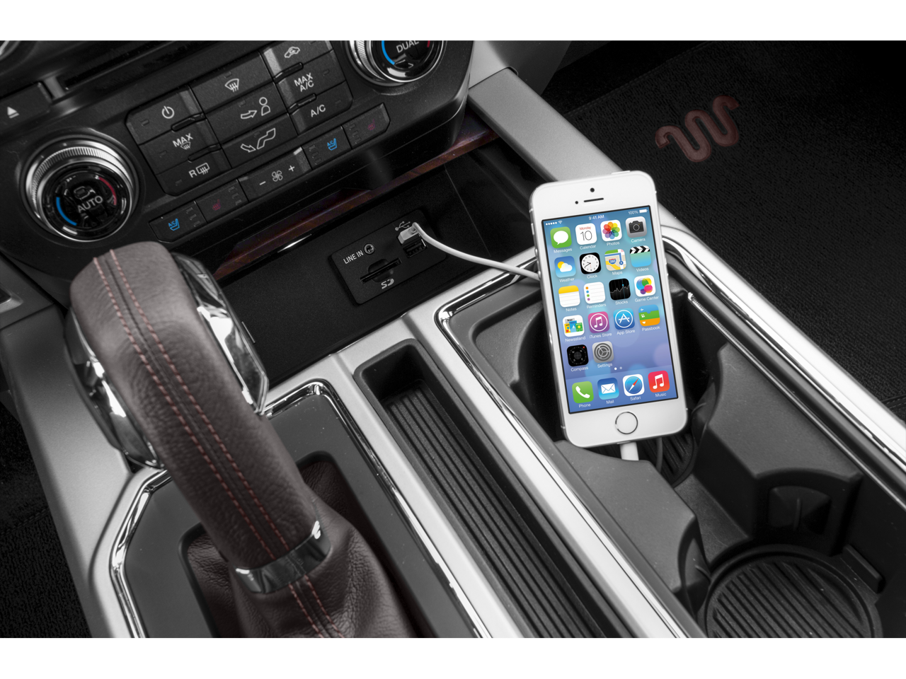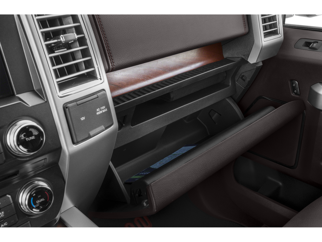 Inside our King Ranch, be pampered by ventilated/heated premium leather seats, a heated steering wheel, rich wood trim, dual-zone automatic climate control, a 110-volt/400-watt power inverter, and an 8-inch gauge cluster information display. Stay safely connected thanks to SYNC with MyFord Touch that includes a touchscreen, voice-activated navigation, internet connectivity, and a ten-speaker sound system with satellite radio.