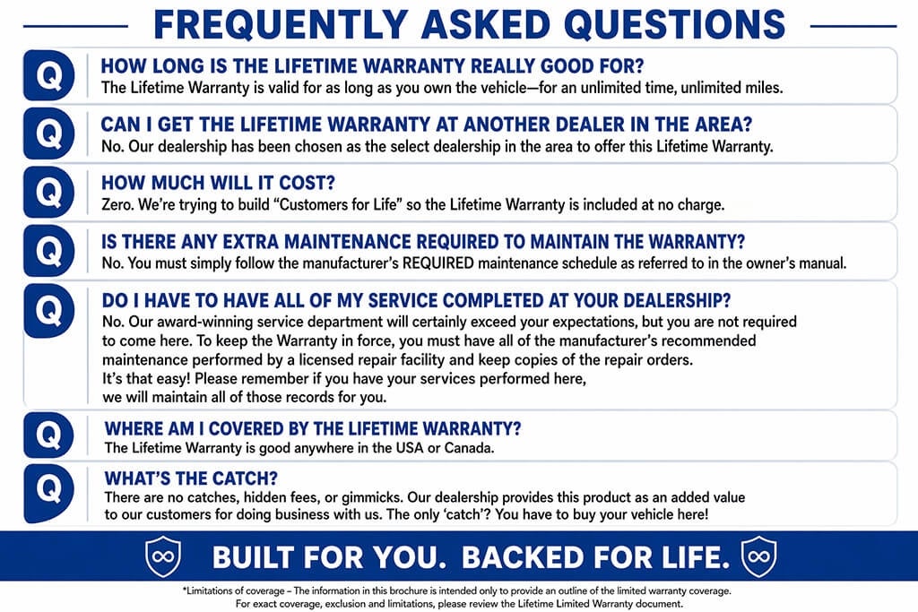 TYLER TRENARY CHRYSLER DODGE JEEP RAM is the only dealer that can present you a FREE LIFETIME WARRANTY with the purchase of a qualified preowned vehicle. Now until the end of the month take advantage of the "THREE FOR FREE" on our qualified preowned vehicles. When you stack FREE LIFETIME WARRANTY and FREE OIL CHANGES FOR A YEAR with FREE CARWASHES you wont find a better deal for your money and time anywhere else! *** We are only 25 minutes from St. Louis on HWY 44 WEST. ***