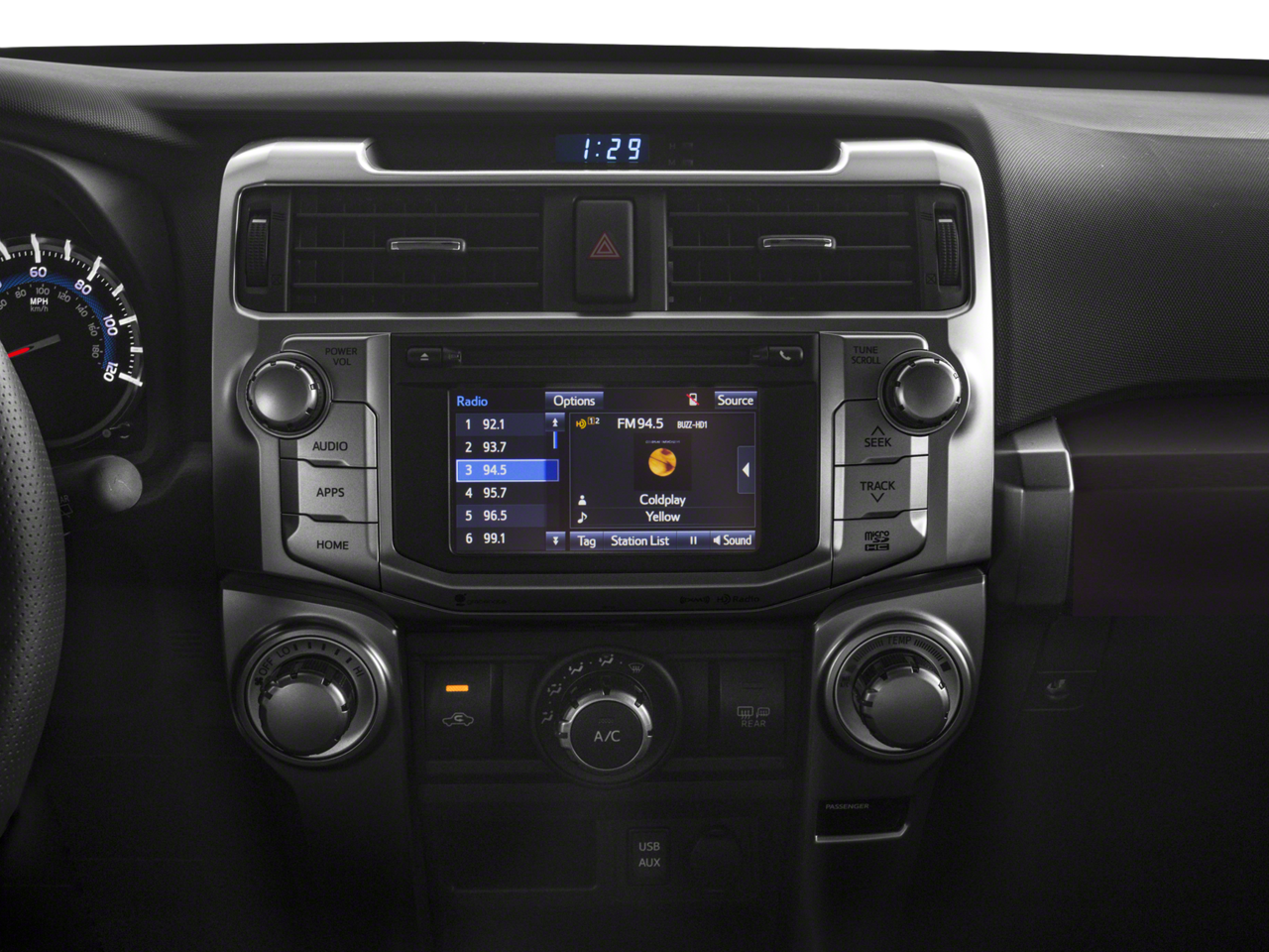 • Radio: Entune Premium Audio w/Navigation -inc: Entune Multimedia bundle (6.1" high resolution touch-screen w/split screen display, AM/FM CD player w/MP3/WMA playback capability, 8 speakers, auxiliary audio jack, USB 2.0 port w/iPod connectivity and control, advanced voice recognition, hands-free phone capability, phone book access and music streaming via Bluetooth® wireless technology), Siri Eyes Free, Entune AppSuite, HD Radio, HD Radio predictive traffic and Doppler weather overlay, AM/FM cache radio, SiriusXM satellite radio w/3-month complimentary all access trial, Gracenote album cover art and integrated backup camera display w/projected path, Entune App Suite includes Destination Search, iHeartRadio, MovieTickets.com, OpenTable, Pandora, Facebook Places, Yelp and Slacker Radio; real-time info including traffic, weather, fuel prices, sports and stocks Access to Entune services is subscription free. See toyota.com/entune for details.