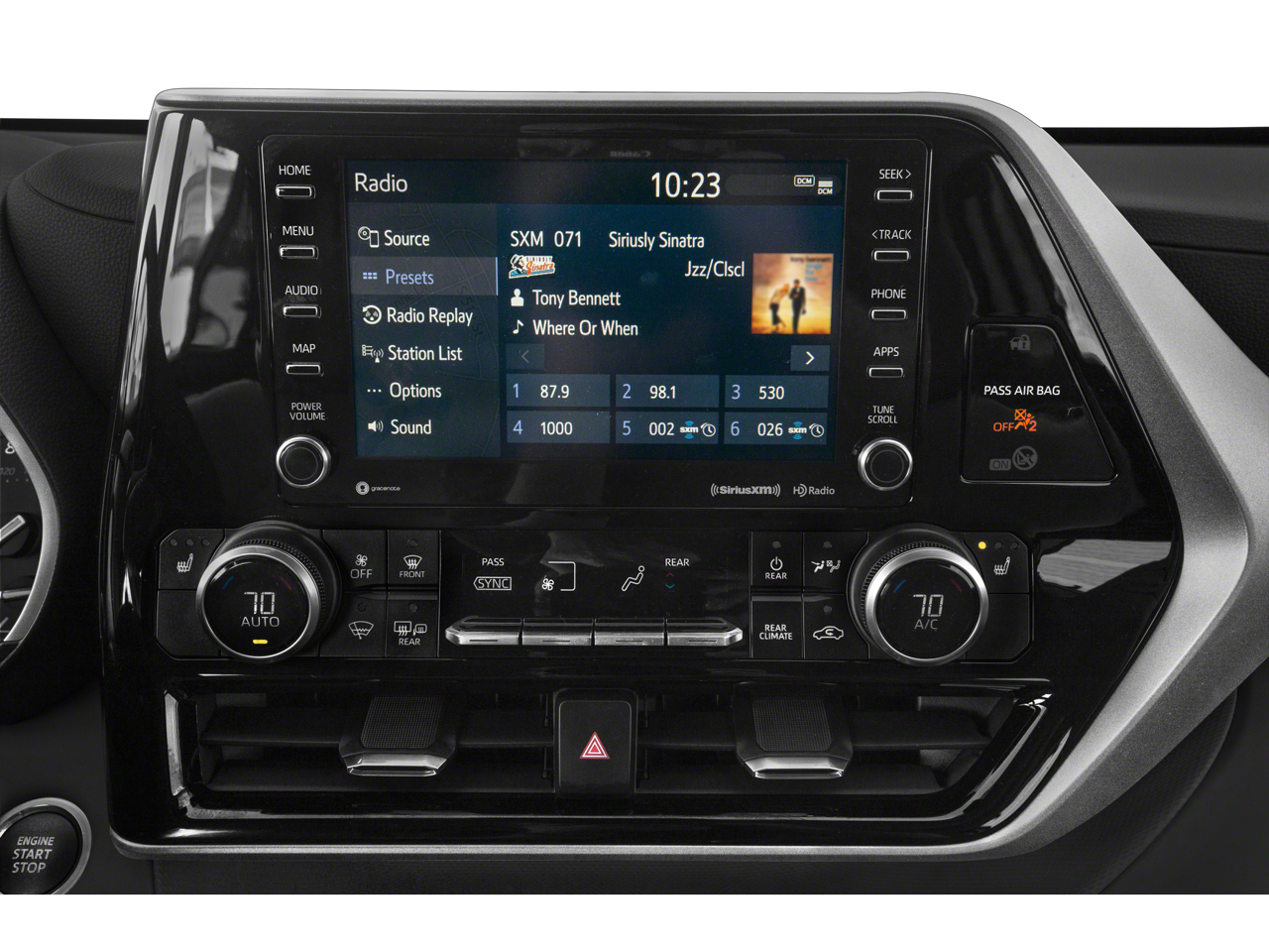 Inside, our spacious XLE cabin can fit up to seven people while offering upscale amenities such as heated SofTex power front seats, second-row captain's chairs, a versatile third row, tri-zone automatic climate control, a 7-inch driver information display, and an 8-inch touchscreen. That's the focal point of our infotainment system, which includes Android Auto/Apple CarPlay, Amazon Alexa capability, available WiFi, Bluetooth®, wireless charging, and a six-speaker sound system.