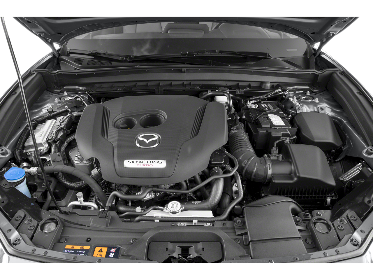 Our 2.5 Turbo cabin has a sophisticated design that delivers high levels of comfort and versatility with heated leatherette front sport seats, eight-way power for the driver, a leather-wrapped steering wheel, dual-zone automatic climate control, remote keyless entry, and push-button start. Enjoy your favorite talk or tunes with the Mazda Harmonic Acoustics sound system, and stay connected with an 8.8-inch center display, a console-mounted controller, WiFi compatibility, Android Auto, Apple CarPlay, and Bluetooth®.
