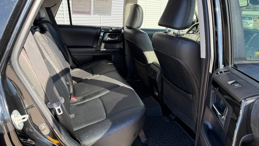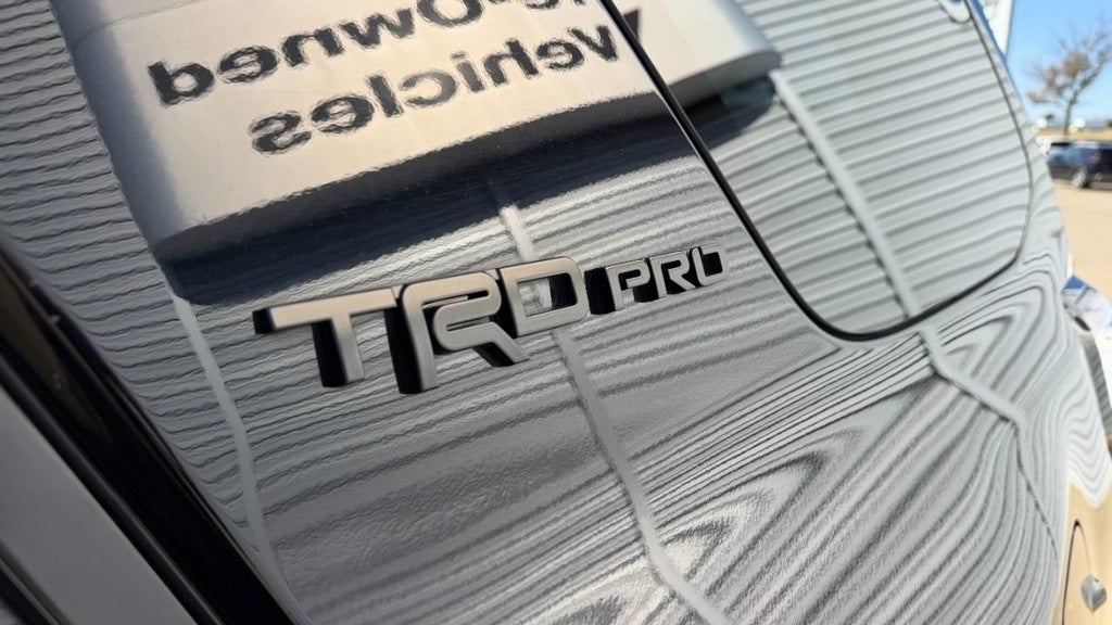 Call/Text 573-334-9611 to get service records and the vehicle history report or to check availability. TRD Pro Package (Fog Lights, Garage Door Opener, Moonroof, Right & Left Individual Air Conditioner, Roof Rail Delete, TRD Badging, TRD Pro All Weather Floor Liner, TRD Pro Exhaust, TRD Pro Shift Knob, TRD Roof Rack, TRD Suspension Kit, and Wireless Smart Entry Door Lock), 15 Speakers, 3.727 Axle Ratio, 4-Wheel Disc Brakes, ABS brakes, Air Conditioning, Anti-whiplash front head restraints, Apple CarPlay/Android Auto, Auto High-beam Headlights, Auto-dimming Rear-View mirror, Brake assist, Bumpers: body-color, Compass, Cruise Control, Driver door bin, Driver vanity mirror, Dual front impact airbags, Dual front side impact airbags, Electronic Stability Control, Emergency communication system: Safety Connect with 1-year trial, Front anti-roll bar, Front Bucket Seats, Front Center Armrest, Front fog lights, Front reading lights, Front wheel independent suspension, Garage door transmitter: HomeLink, Heated door mirrors, Heated Seats, Heated Seats, Illuminated entry, Knee airbag, Leather Shift Knob, Low tire pressure warning, Navigation System, Occupant sensing airbag, Outside temperature display, Overhead airbag, Overhead console, Panic alarm, Passenger door bin, Passenger vanity mirror, Power door mirrors, Power Driver Seat, Power Moonroof, Power passenger seat, Power steering, Power windows, Radio: Premium JBL Audio, Rear anti-roll bar, Rear seat center armrest, Rear View Camera, Rear window defroster, Rear window wiper, Remote keyless entry, Roof rack, Security system, SiriusXM, Softex Synthetic Leather Seat Trim, Speed-sensing steering, Split folding rear seat, Spoiler, Steering wheel mounted audio controls, Tachometer, Telescoping steering wheel, Tilt steering wheel, Traction control, Trip computer, Turn signal indicator mirrors, Variably intermittent wipers, and Wheels: 17 Matte Black Flow-Formed TRD Alloy.