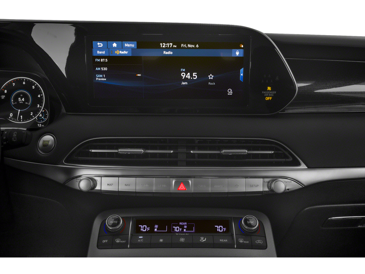 • Radio: AM/FM/MP3 Premium Audio System -inc: 10.25" display screen, Apple CarPlay and Android Auto, Bluetooth® hands-free w/wireless audio streaming, steering wheel audio and phone controls, dual front USB ports, SiriusXM, HD Radio, Blue Link connected car system, 12 speakers including subwoofer, external amplifier, Clari-Fi music restoration technology, QuantumLogic surround, navigation system, rear seat quiet mode and driver talk in-car intercom