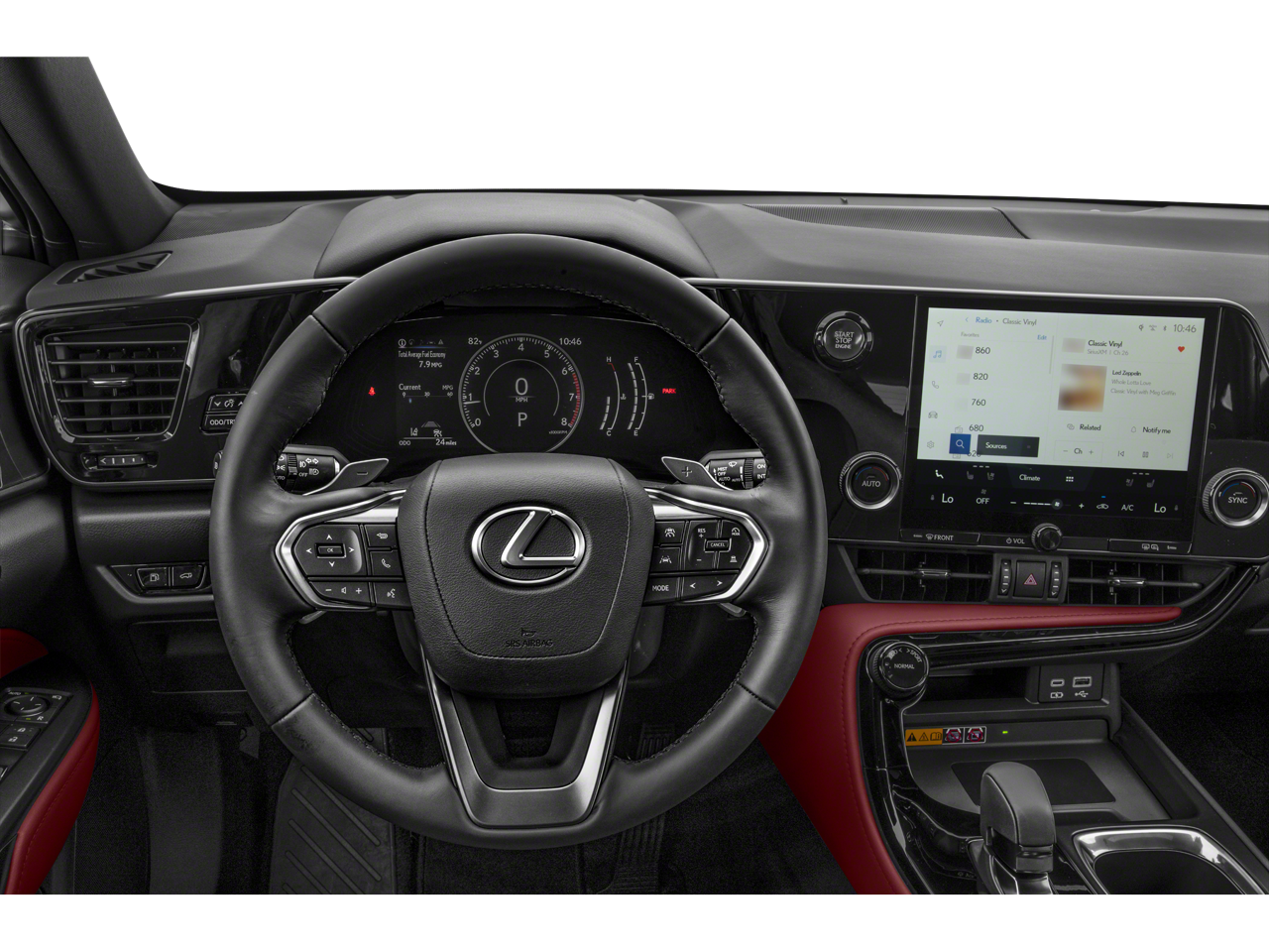 Smart details from our Lux Pack are at your service in our NX 350 cabin. They add heated/ventilated leather power front seats, a leather power steering wheel, open-pore wood trim, and a 14-inch touchscreen to dual-zone automatic climate control and an advanced infotainment system. It features WiFi compatibility, wireless Apple CarPlay/Android Auto, Cloud Navigation, Bluetooth®, and a 10-speaker Lexus audio system with Amazon Music/Apple Music compatibility. You can find ample cargo space in the back, too!