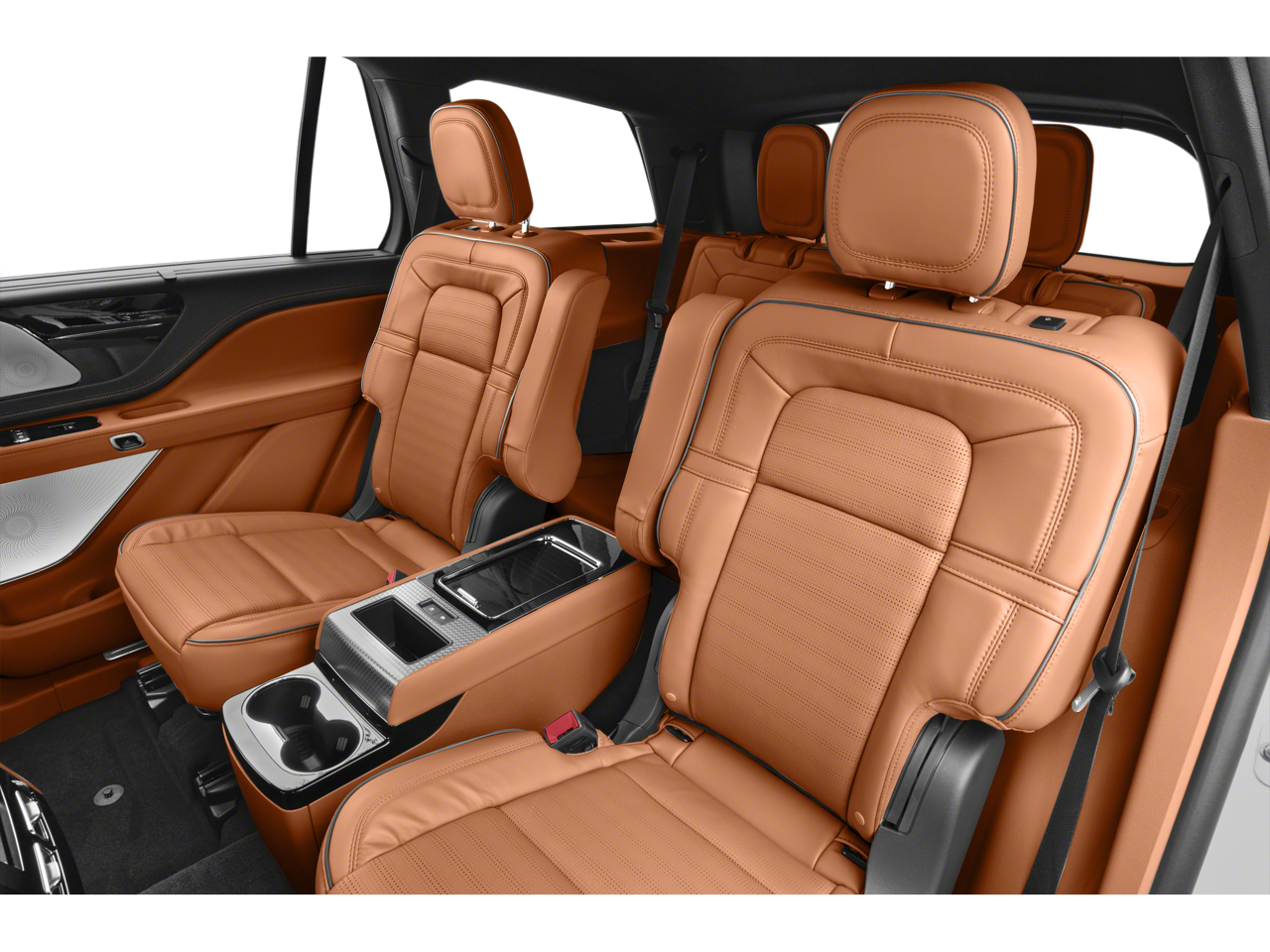 Our Lincoln Black Label Aviator Chalet-themed cabin has a crafted appearance with incredibly comfortable 30-way Perfect Position heated/ventilated massaging leather front seats, heated/ventilated second-row captain's chairs, a power-folding third row, a heated leather power steering wheel, and quad-zone automatic climate control. A 28-speaker Revel sound system, a 10.1-inch touchscreen, full-color navigation, superior connectivity, and wireless charging set a high bar for digital convenience.