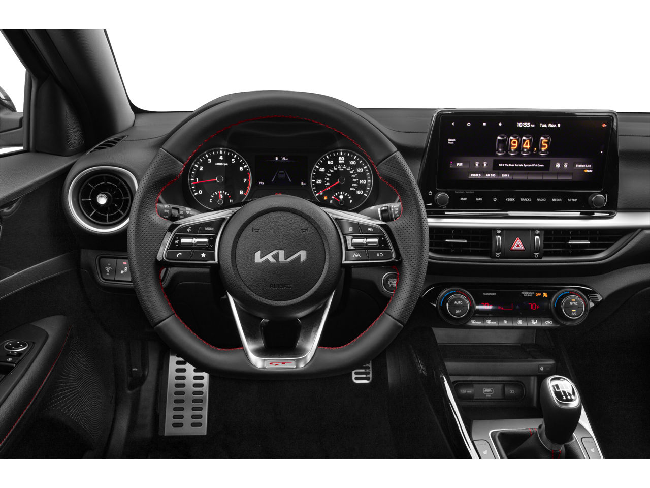 • Radio: 10.25" Display Audio -inc: 6 speakers, 10.25" touch screen, navigation, Kia Connect, HD radio, Apple CarPlay, Android Auto, Bluetooth® hands-free and USB input
