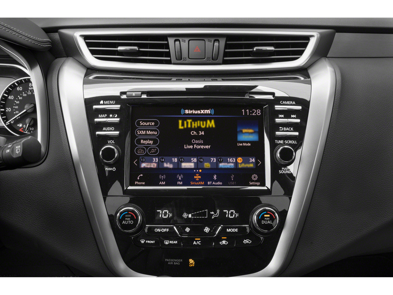 • Radio: AM/FM/CD/MP3/WMA Audio System -inc: Bose premium audio system w/11 speakers plus dual driver subwoofer, NissanConnect w/navigation featuring Apple CarPlay and Android Auto, Nissan door to door navigation w/3D building graphics and satellite imagery, connected navigation features including online POI search, door-to-door and online premium traffic information, SiriusXM Travel Link (weather, fuel prices, movie listings, stock info, sports and parking), SiriusXM Traffic, auxiliary audio input jack, SiriusXM satellite radio, A-IVI 8" display, 2 front illuminated USB connection ports (1 type-A, 1 type-C) for iPod interface and other compatible devices, Bluetooth® hands-free phone system, streaming audio via Bluetooth®, hands-free text-messaging assistant, Siri Eyes Free and 2 rear illuminated USB charge ports (1 type-A, 1 type-C)