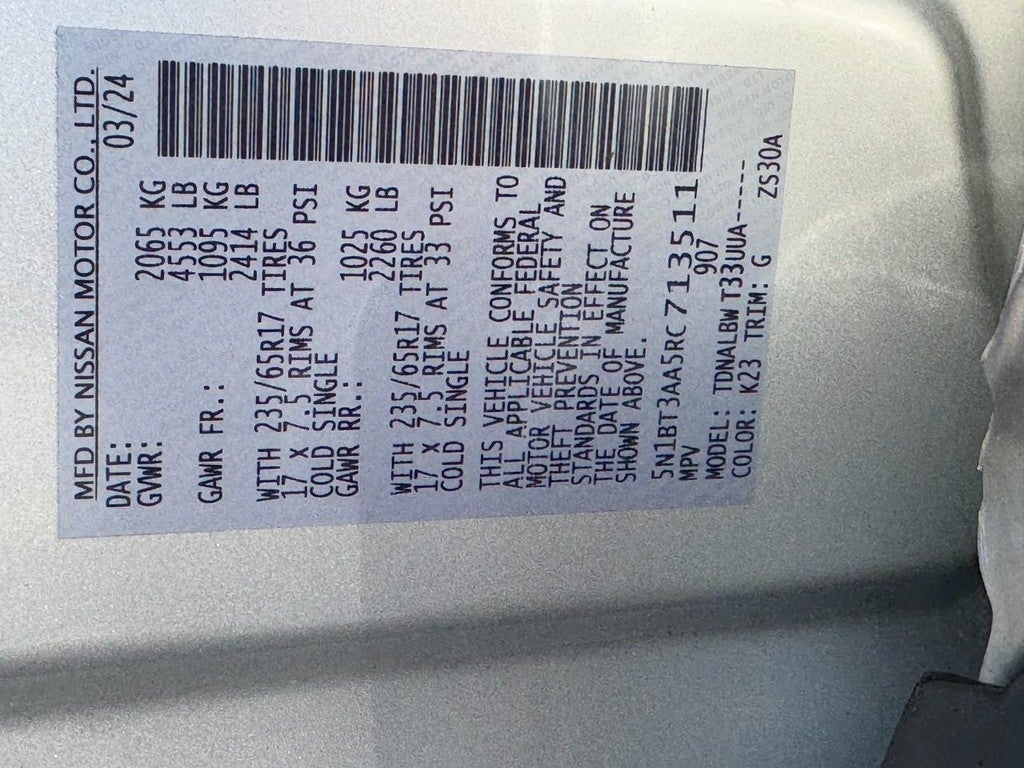 VIN: 5N1BT3AA5RC713511