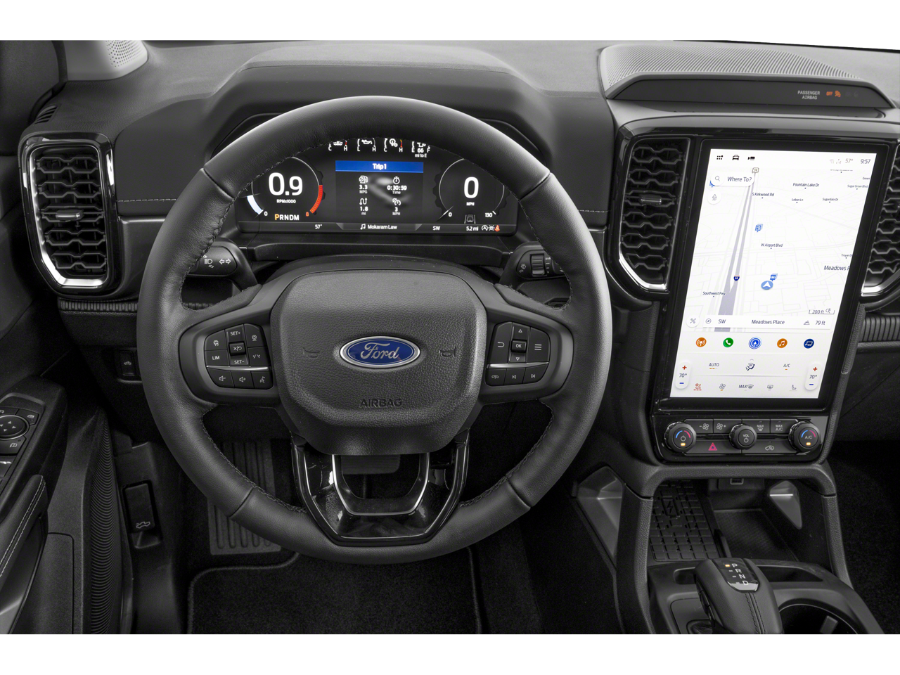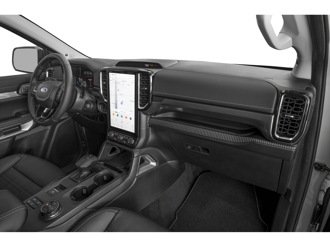 Our impressive Lariat cabin boasts heated leather power front seats, a leather-wrapped steering wheel, dual-zone automatic climate control, a powered rear window, 12V/120V outlets, and Intelligent Access with pushbutton ignition. And remote. Enjoy real-world tech benefits with the 12-inch driver display, 12-inch touchscreen, connected navigation, WiFi compatibility, Apple CarPlay, Android Auto, Bluetooth®, wireless charging, and B&O audio.